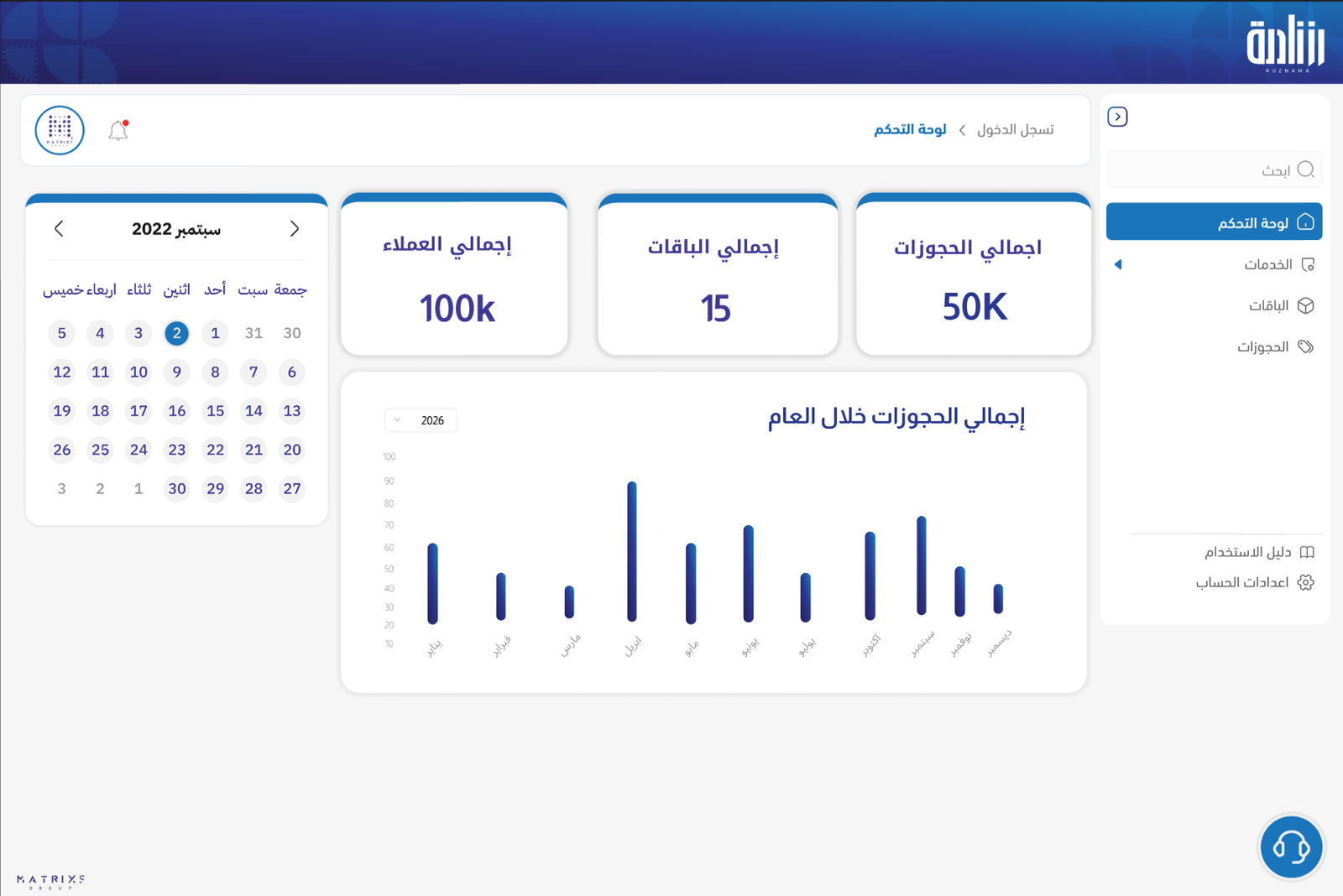 مع رزنامة تتحكم في جميع تفاصيل الحجوزات والخدمات بسهولة، من إضافة