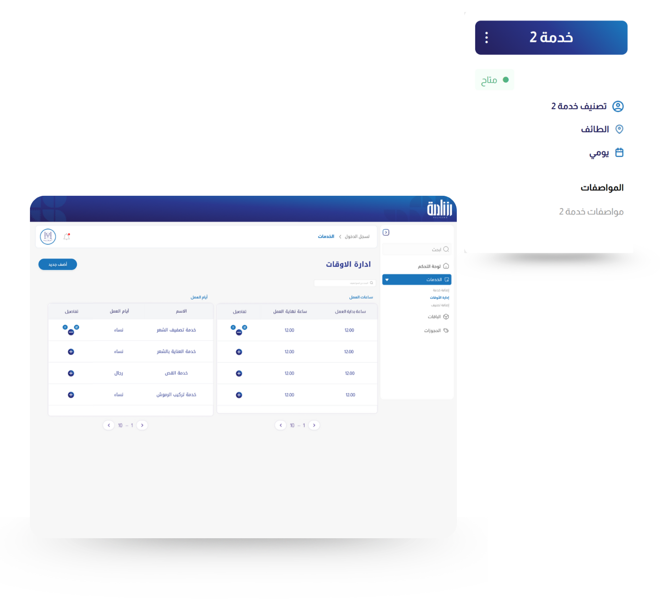 رزنامة تُدار من منصة واحدة، بخطوات بسيطة وتنظيم احترافي، حيث يمكن لعملائك حجز مواعيدهم بسهولة، اختيار الخدمات التي تناسبهم، وإتمام المدفوعات الإلكترونية بأمان وراحة تامة.